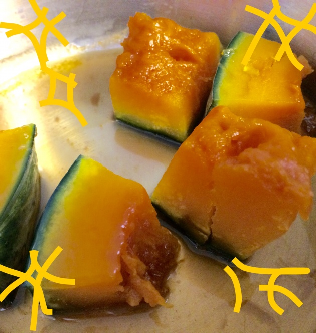 かぼちゃは硬いから切ってくれました。(ありがたいです。)(生かぼちゃです)